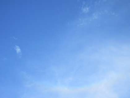 今朝は、透明に近い澄んだ青と白、うっすらと虹のかかる美しい空でした。
