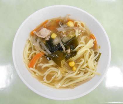 「わかめコーンラーメン」は、わかめとコーン以外にも、豚肉や人参、もやし、ねぎ、白菜など具だくさんで、とてもおいしかったです。