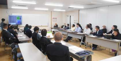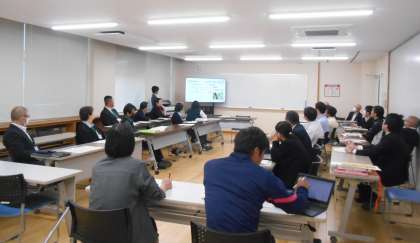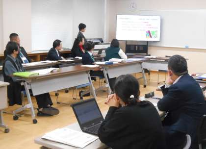 年次研修で、学校内外での研修会に参加した教員から、研修内容や学んだこと等を校内の教員で共有し、学びを深めました。