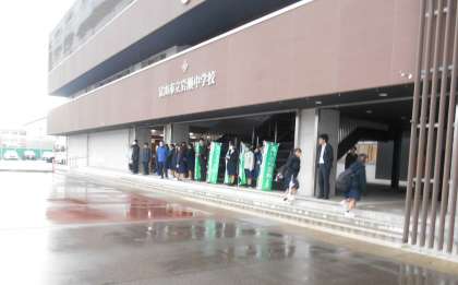 今朝は、大変寒い中でしたが、3年3組の皆さんが元気にあいさつ運動を行っていました。