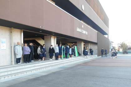 今朝は、3年2組の皆さんが元気にあいさつ運動を行っていました。