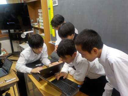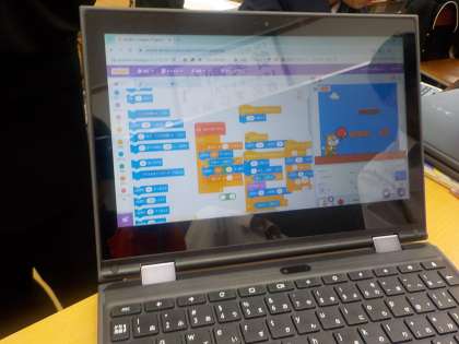 プログラミンで作成したオリジナルゲームをお互いに試しています。