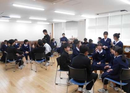 会議室に集まって、異学年で楽しく交流しました。