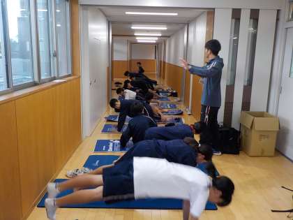 11月28日(木) 天候がよくないので、本日は校舎内でトレーニングです。