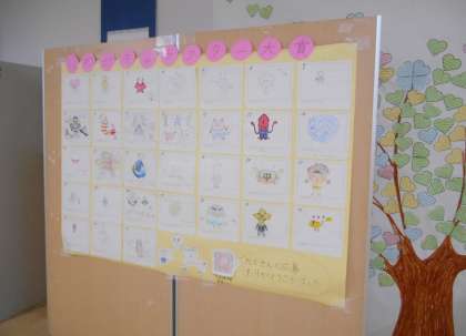 生徒会執行部の企画で募集した「いわせマスコットキャラクター大賞」の応募作品が1階廊下に掲示してあります。