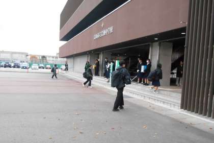 今朝も生徒会執行部が「赤い羽根共同募金」の活動を行っていました。