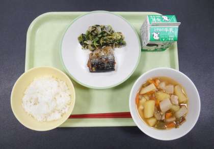 今日の献立は、「ごはん、牛乳、にしんの昆布煮、磯和え、筑前だき」でした。