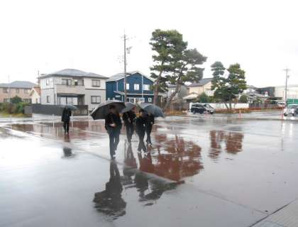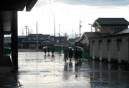 生徒たちの登校とともに、空がだんだんと明るくなってきました。