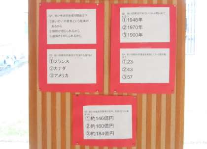 お昼の放送で、生徒会執行部から「赤い羽根共同募金」クイズの解答がありました。
