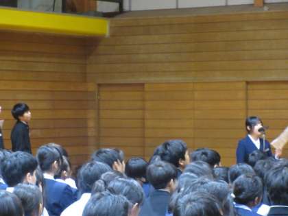 保健委員会の生徒からの発表の後、学校医(眼科)の堀先生から目の健康について、少年サポートセンターの小谷さんからは、SNSトラブルについて教えていただきました。