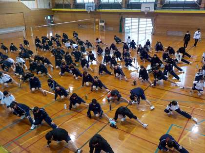 準備運動のあと、4クラス対抗リーグ戦がスタートしました。
