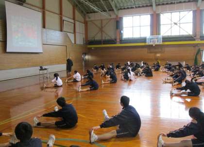 保護者懇談会の期間中は、運動部が体育館で、合同トレーニングを行っています。