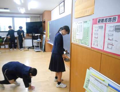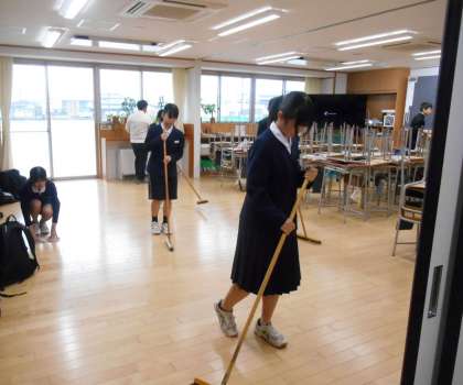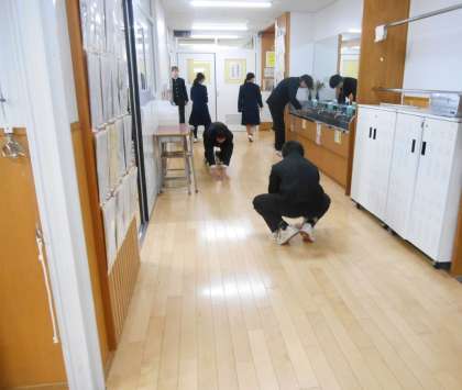 一生懸命に、担当場所の清掃に取り組んでいます。