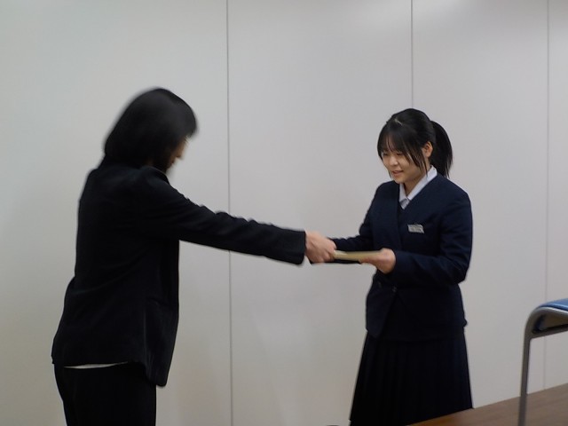 始業式が行われる前に、受賞伝達式と意見発表を行いました。