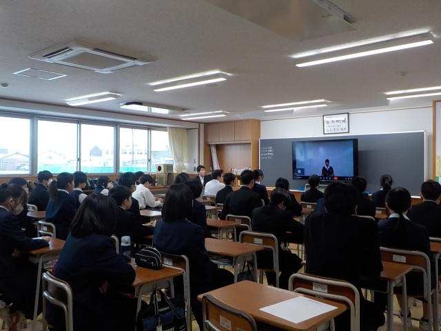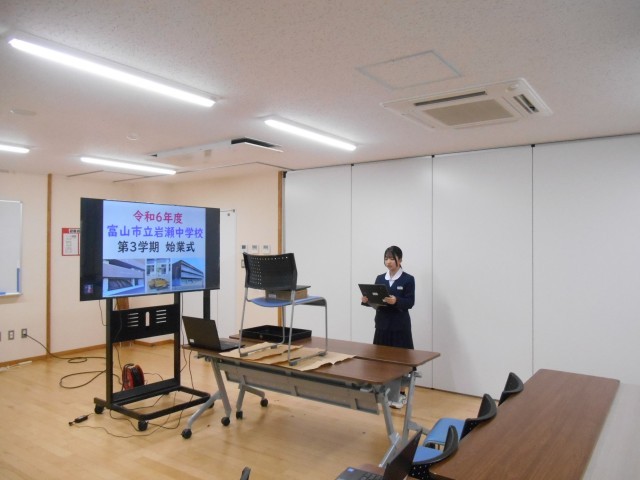 意見発表では、1年生の代表生徒が中学生になってからの生活を振り返り、挑戦の大切さを自身の体験を基に発表し、3学期やこれからの生活に向けての決意を述べました。