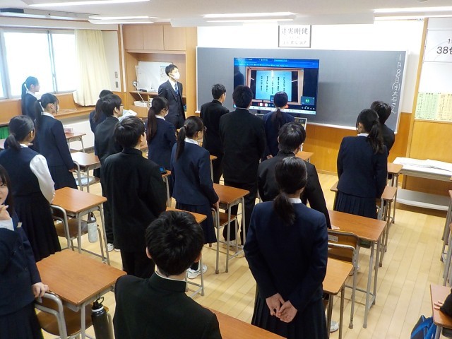 校歌斉唱では、年が明けて初めての校歌を各教室で一生懸命歌っていました。