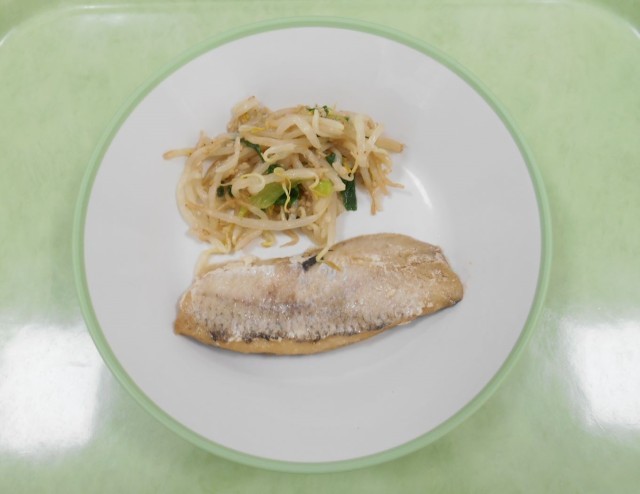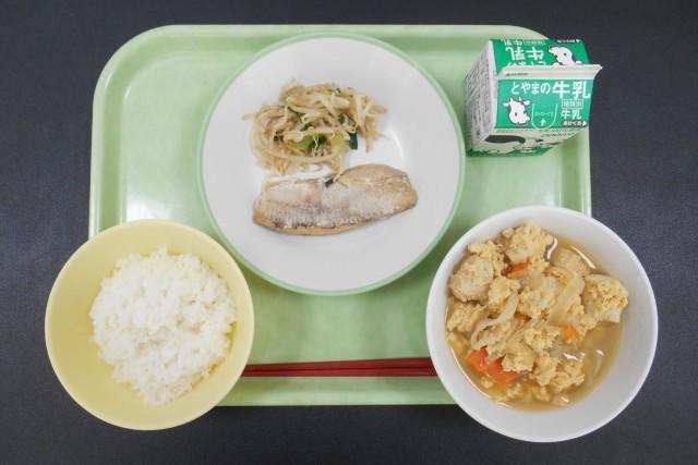 今日の献立は、「ごはん、牛乳、にしんのみぞれ煮、塩ナムル、親子煮」でした。