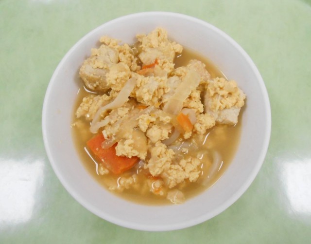 「親子煮」は、鶏肉と厚揚げなどが甘めの味付けで卵でとじてあり、とてもおいしくいただきました。