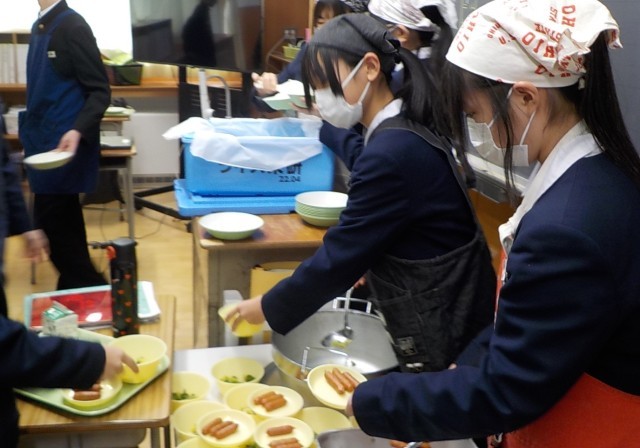 2年生 給食準備中
