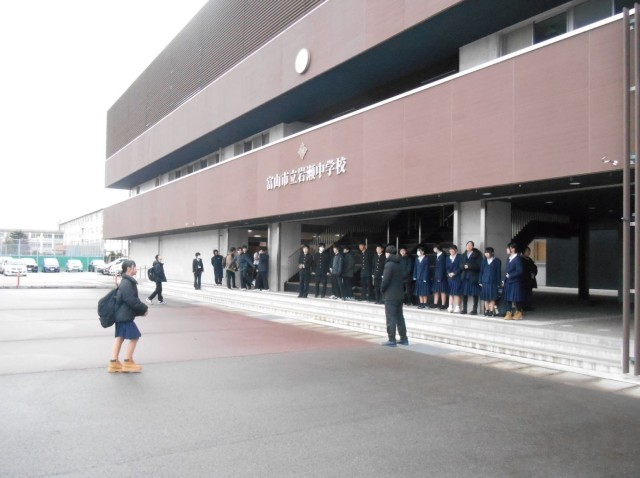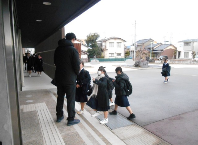 今朝は、1年生の学年生徒会と3年生の有志のみなさんが玄関であいさつ運動を行っていました。