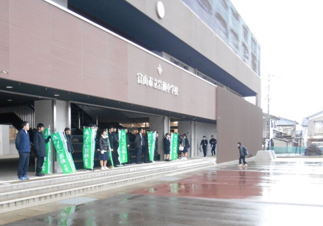 今朝は、2年3組のみなさんが元気にあいさつ運動を行っていました。