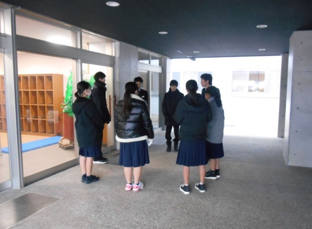 あいさつ運動終了後に、生徒会執行部がこの後の活動の打合せをしていました。
