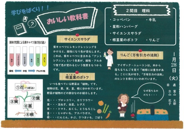 「学びをぱくり!おいしい教科書」、今日は「理科」の献立です。