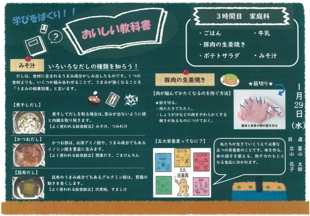 「学びをぱくり!おいしい教科書」、今日は「家庭科」の献立です。