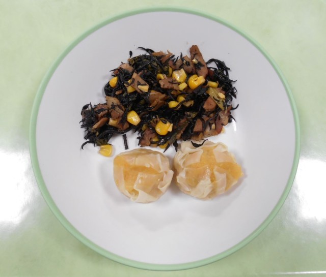今日の給食 公開日 2025/02/03 更新日 2025/02/03 今日の岩瀬中 2月3日(月)今日の献立は、「ごはん、牛乳、にんじんシューマイ、ひじきとコーンのソテー、卵とじ、節分豆」でした。今年は、昨日が節分でしたね。節分では「年齢の数+1個」の豆を食べますが、それは「来年も健康で幸せに過ごせますように」との願いからだそうです。ちなみに今日の福豆には、34個の豆が入っていましたよ。 +1