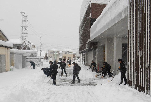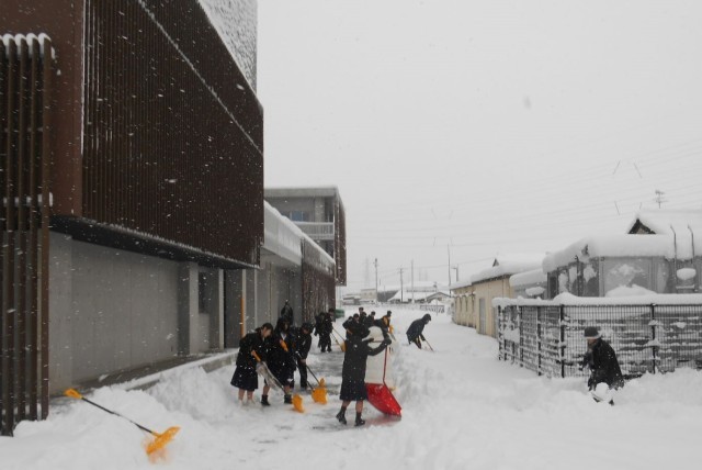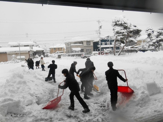 今朝は、1年3組が除雪当番でしたが、雪の降る寒い中、たくさんの有志のみなさんが除雪作業を手伝ってくれました。