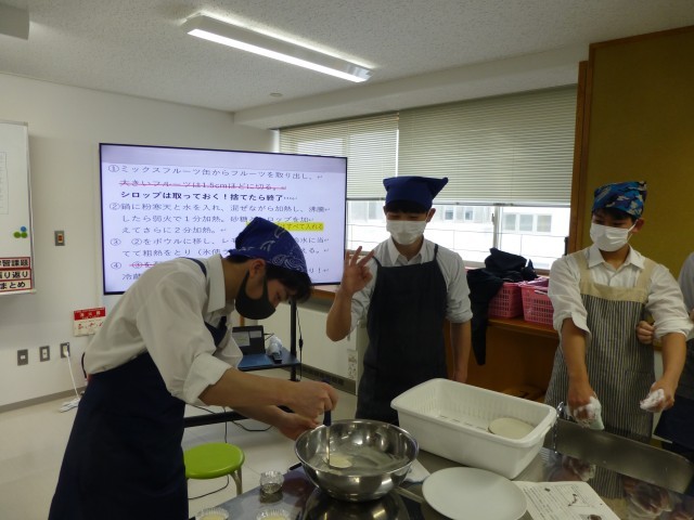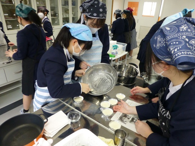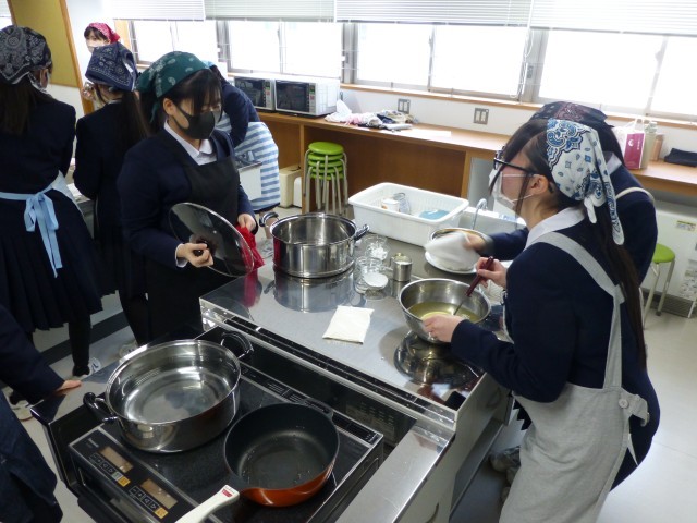 昨日の私立高校一般入試を終えて、今日は家庭科の授業で3年1組が調理実習に取り組みました。
