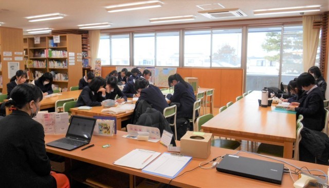 学習委員会の企画で、学年末評価に向けて、放課後、図書室が学習室として開放されています。
