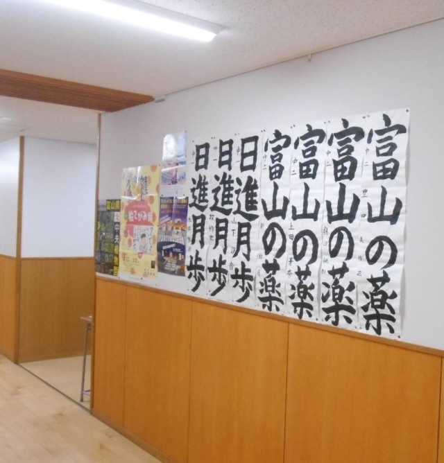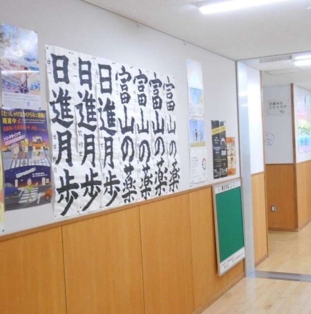 現在、1・2年生玄関側の廊下に、11日に富山市総合体育館で行われた富山県小・中・高校生書初大会に参加した生徒たちの作品が掲示されています。