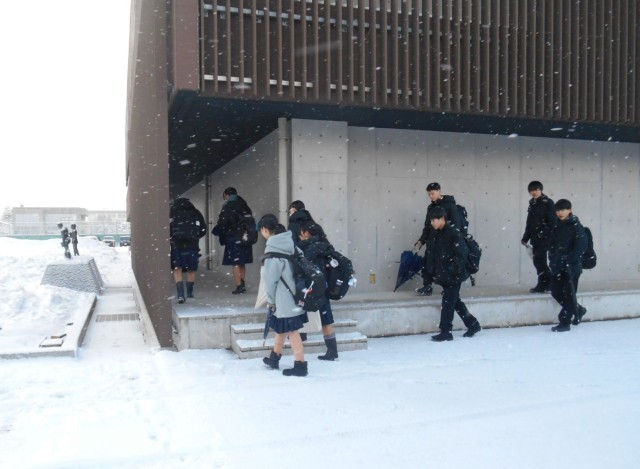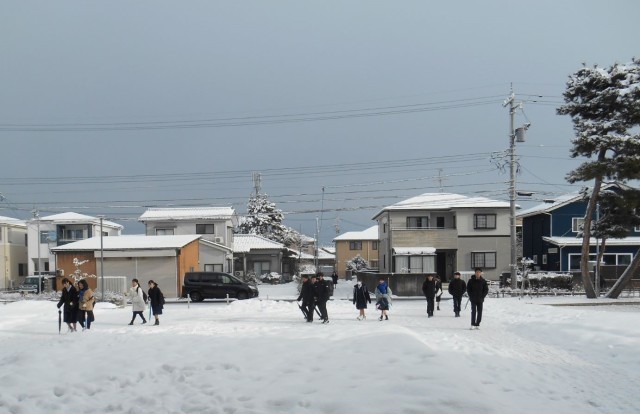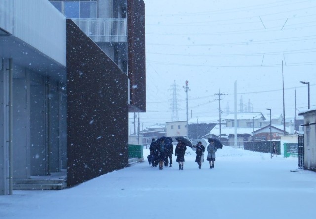 細かい雪が降っていますが、だんだん空が明るくなってきました。