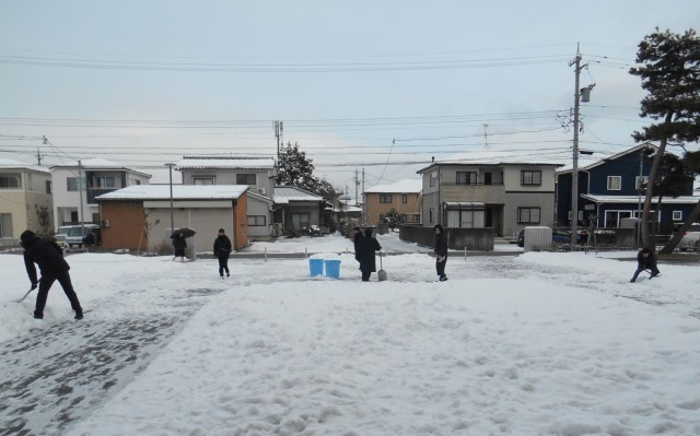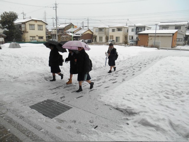 今朝は、路面が凍結していて、前庭で滑ったり転倒したりする生徒がみられたので、先生方が通路にあえて雪を撒いて、滑らないようにしてくれていました。