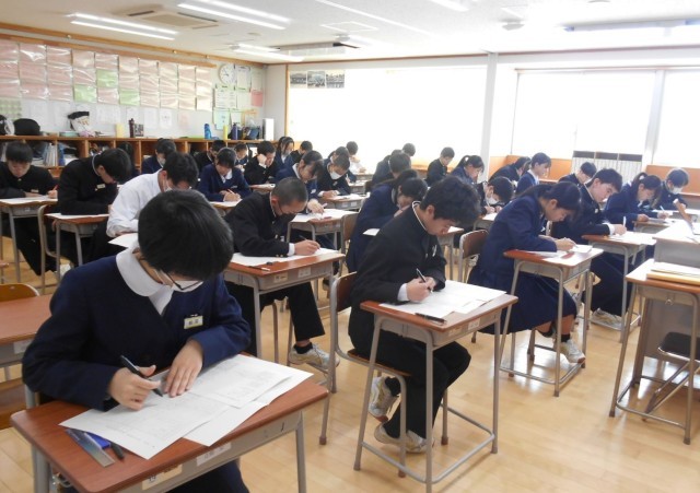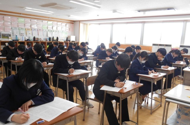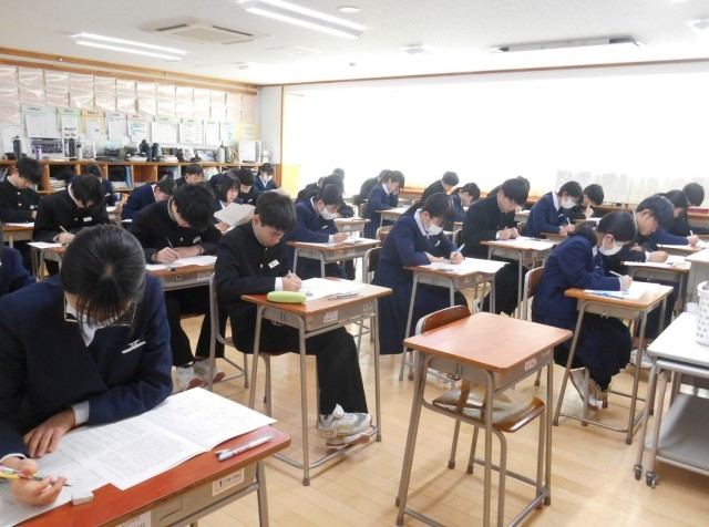 今日は、国語、技術・家庭、英語の3教科の問題に取り組んでいます。