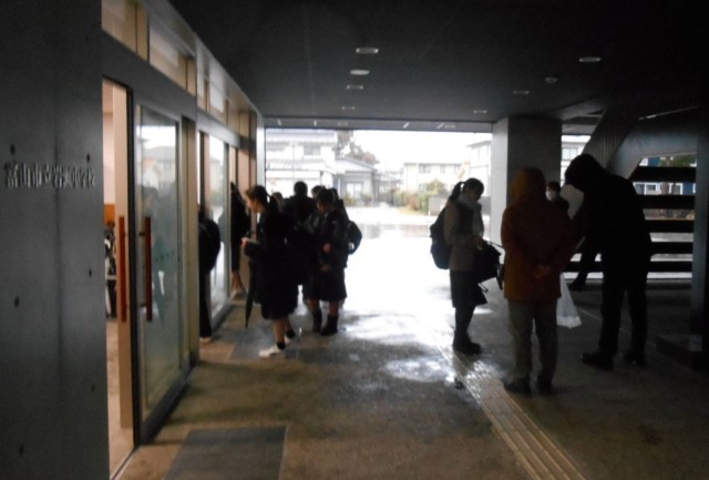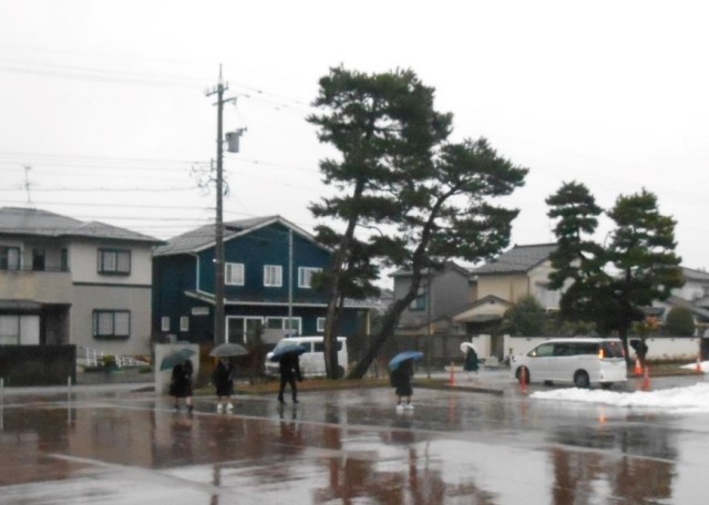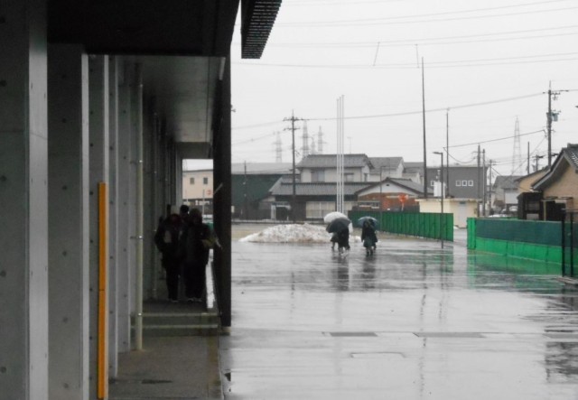 強風で傘がいたんで、先生に治してもらっている生徒も見受けられました。