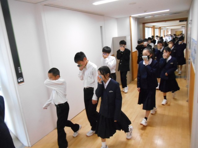 避難ルート、避難するときの姿勢・態度など確認しました。