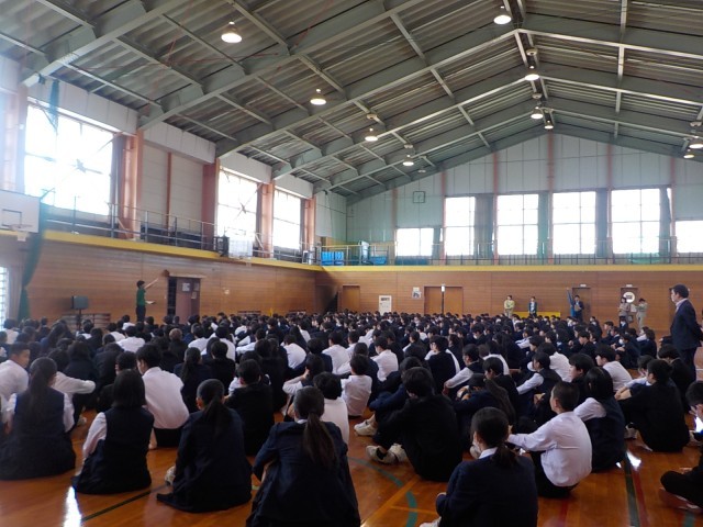 全校生徒・全職員で避難訓練を行いました。