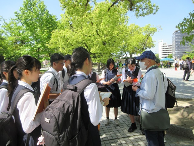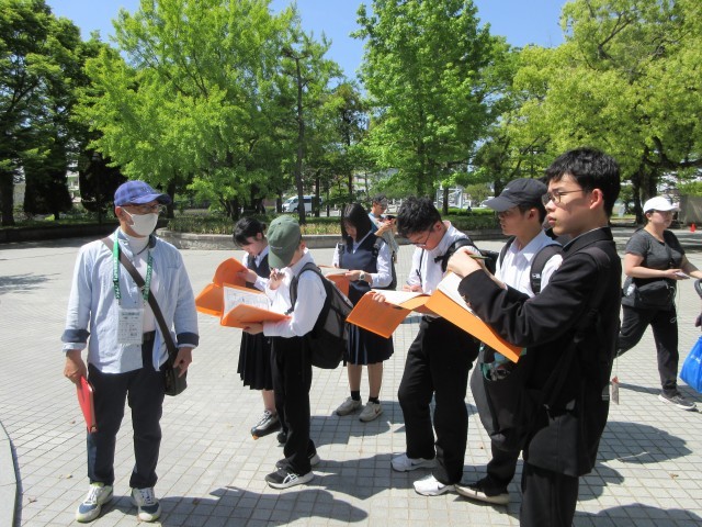 平和記念公園での碑めぐりの様子の一部です。