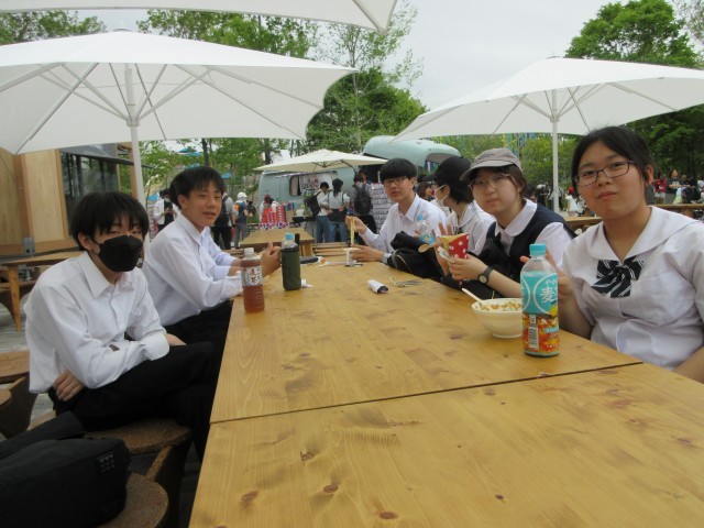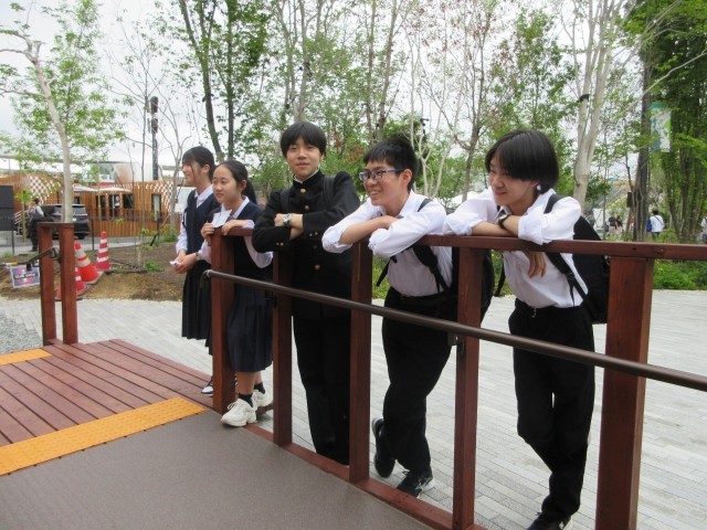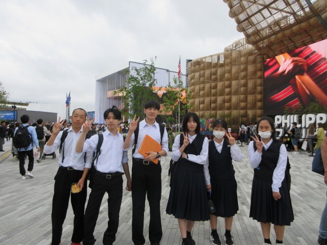 関西大阪万博会場内の班別学習の様子の一場面です。