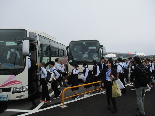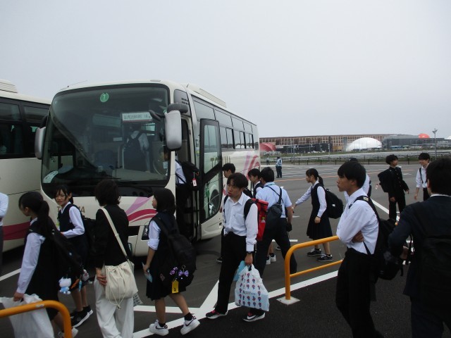 関西大阪万博での学習を終え、バスに乗り込みます。