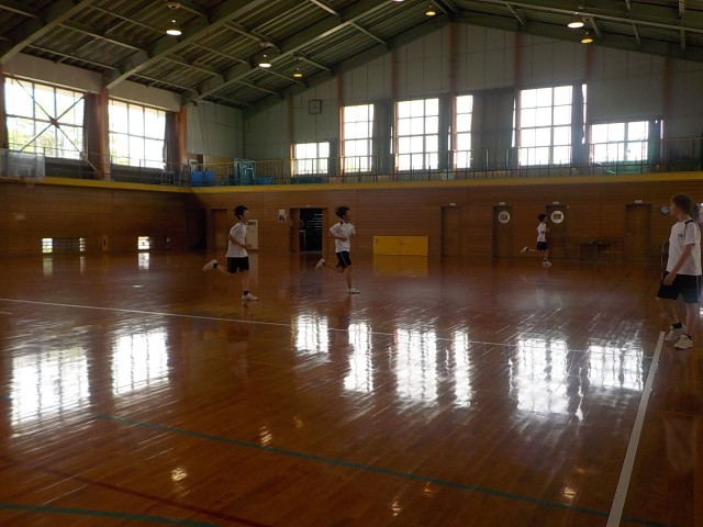 3-2体育 シャトルランをしました。写真はラストまで残った3人です。