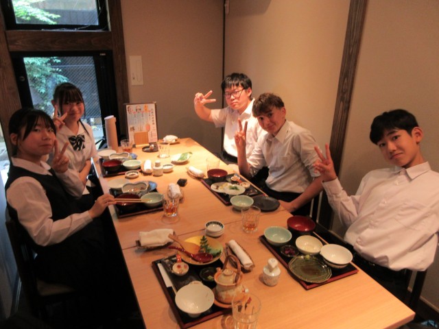 ひがし茶屋街では昼食を取る班が多く、金沢でしか味わえない食事を楽しんでいました。