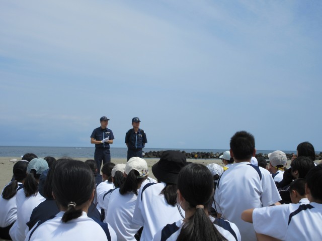 岩瀬浜に無事到着し、海上保安部からの注意点を聞きました。