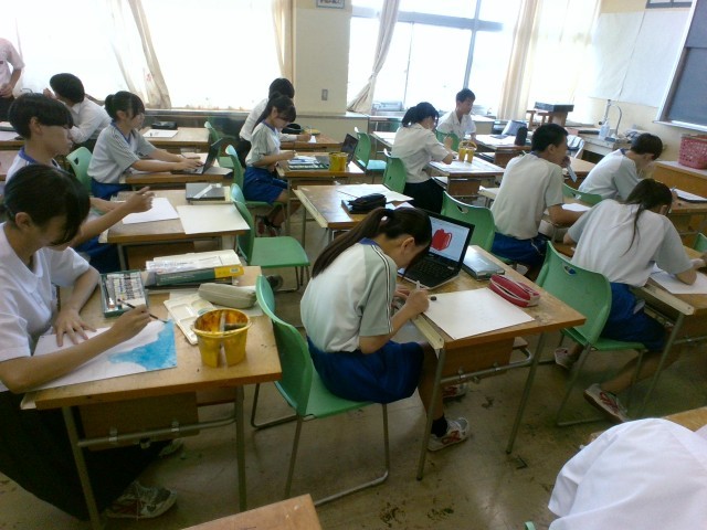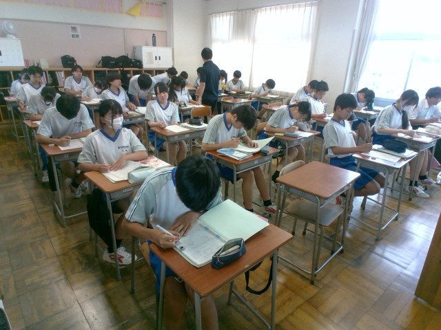3年・授業風景 公開日 2025/07/16 更新日 2025/07/16 3学年 7月16日(水) 3限 3年生の授業の様子です。今日の授業は3限までで終わりです。最後まで集中して頑張っています。 (写真 上:3年1組 数学「二次方程式」)(写真 中:3年3組 国語「和語・漢語・外来語」)(写真 下:3年4組 美術「遠近感が表れるように着彩しよう」)