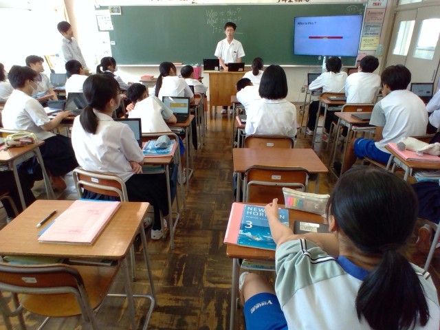 3年・授業風景 公開日 2025/07/17 更新日 2025/07/17 3学年 7月17日(木) 2限 3年生は、自分の考えを発表したり、グループで確認し合ったりと意欲的に学習に励んでしました。 (写真 上:3年2組 英語「Who is this?クイズ」) (写真 中:3年3組 理科「物体の運動の記録」) (写真 下:3年4組 社会「世の中の見方、考え方」)