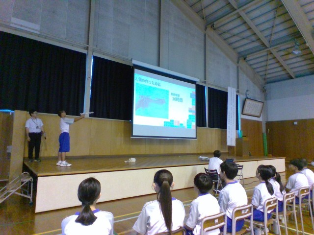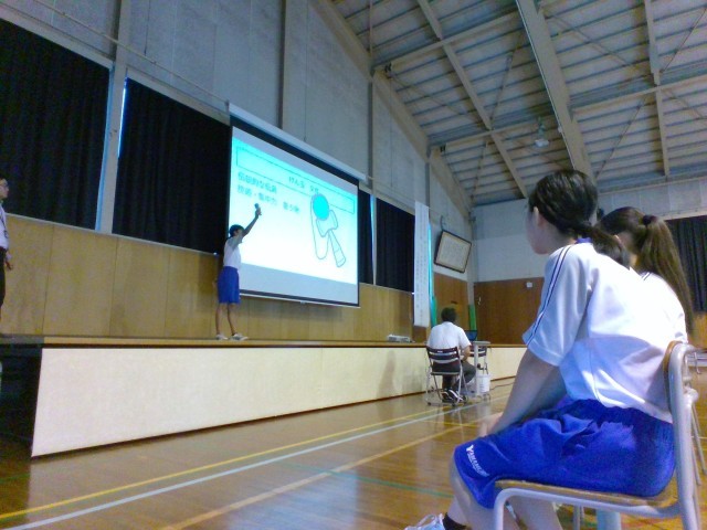 次に、学年代表、学級代表が一学期の振り返りを発表しました。