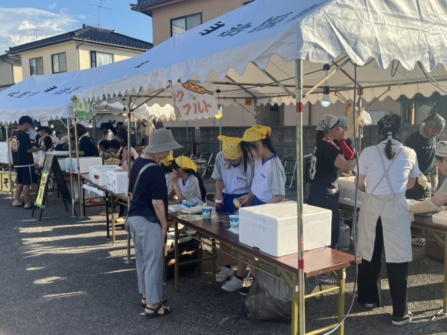 山室中部ふれあわナイト・その1 公開日 2025/07/26 更新日 2025/07/26 山室中学校のページ 7月26日(土) 16:30 山室中部ふれあわナイトでは、山中生ちょボラ(ちょっとしたボランティア)が、黄色いバンダナを着けて頑張っています。