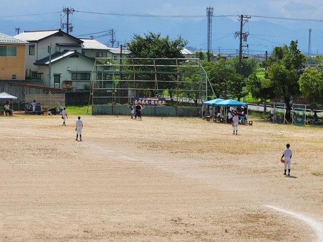 8月3日(日)の部活動・その1 公開日 2025/08/03 更新日 2025/08/03 部活動 8月3日(日) 9:00 野球部は、3年生も参加して保護者の方と試合をしています。生徒、保護者が和気あいあいと野球を楽しんでいます。